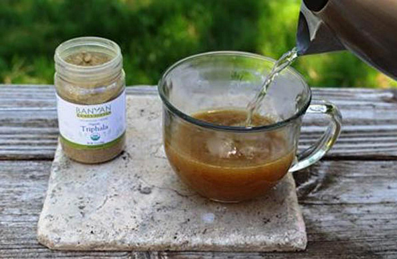 - Смешайте 1⁄2 чайной ложки трифалы с 1⁄4 стакана тёплой воды и выпейте.